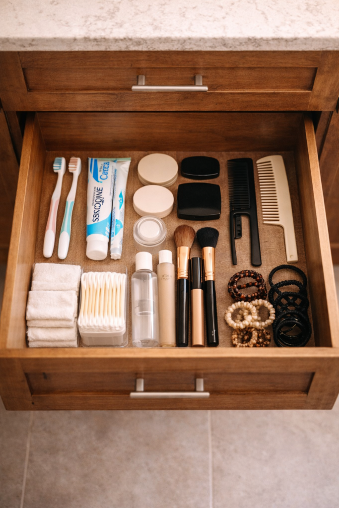 If you store extras (toothpaste, razors, etc.), keep them separate from your daily items.